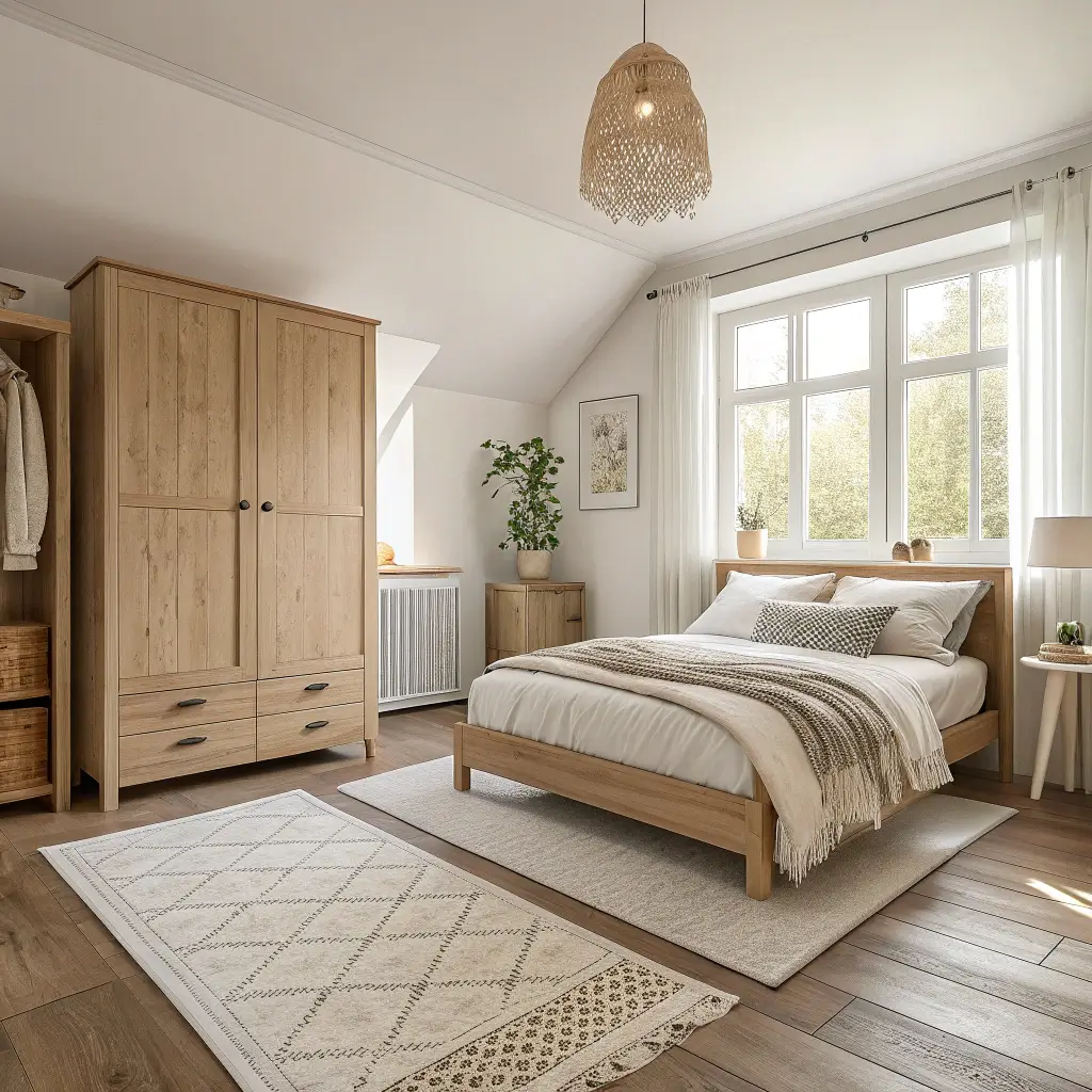 - Light wood furniture with simple lines