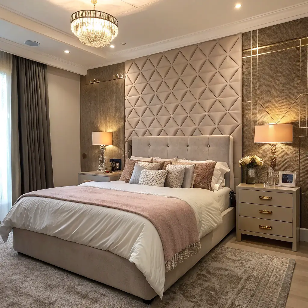 - Statement headboard against the accent wall