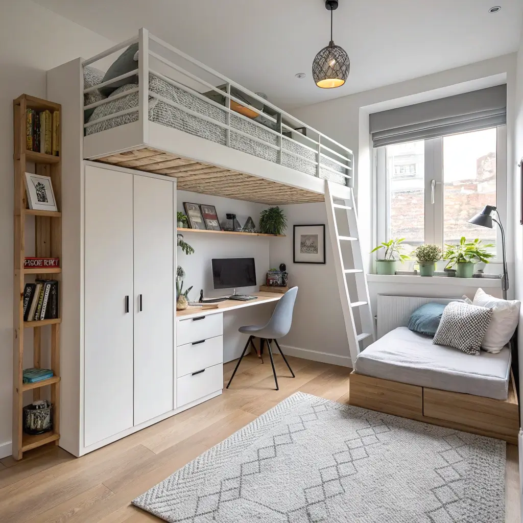Loft beds become your secret weapon here. They free up the entire floor underneath for a desk, seating area, or gaming setup. Teens love having distinct zones in their rooms, and vertical separation creates that naturally.