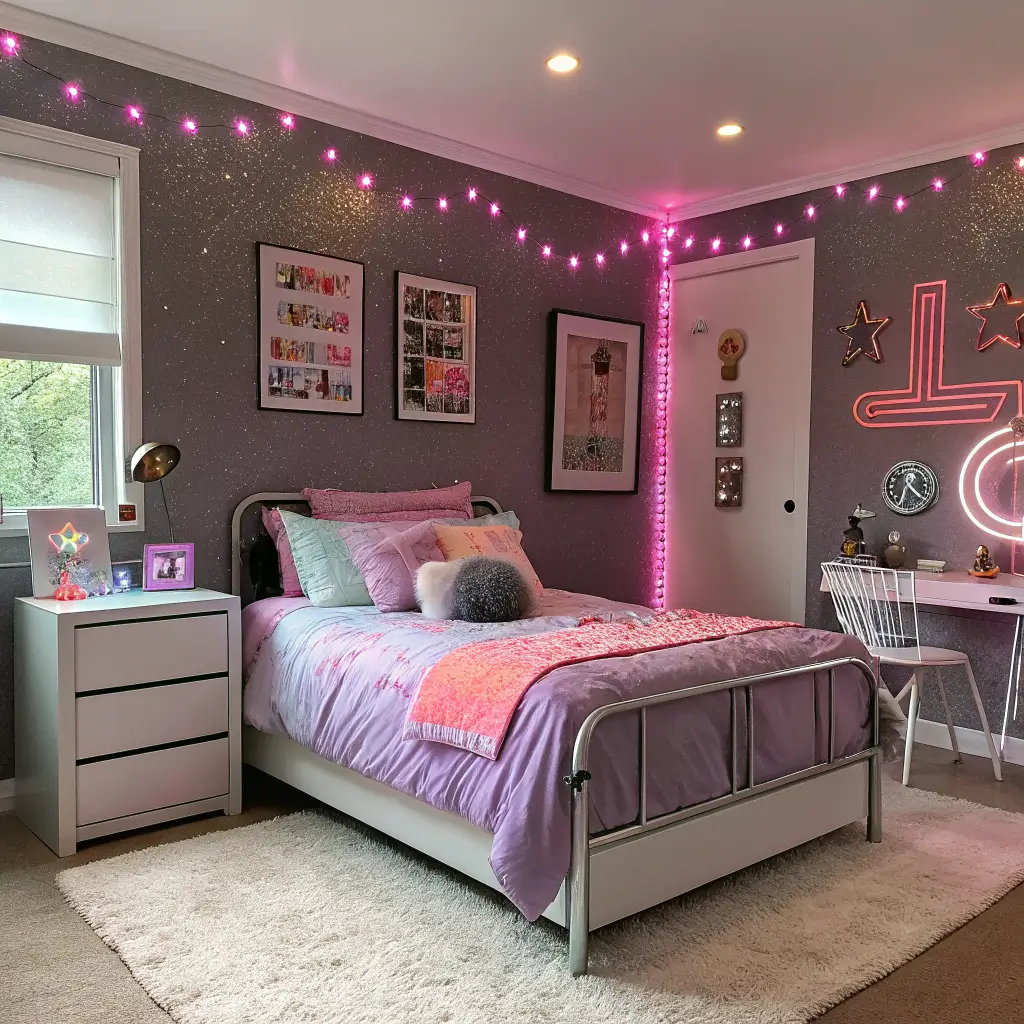 Ever wanted to live like you just signed a record deal with a major label? The teen pop star aesthetic combines glamour with youthful energy. We’re talking pink everything, star-shaped decor, and enough bling to rival early 2000s MTV Cribs episodes.