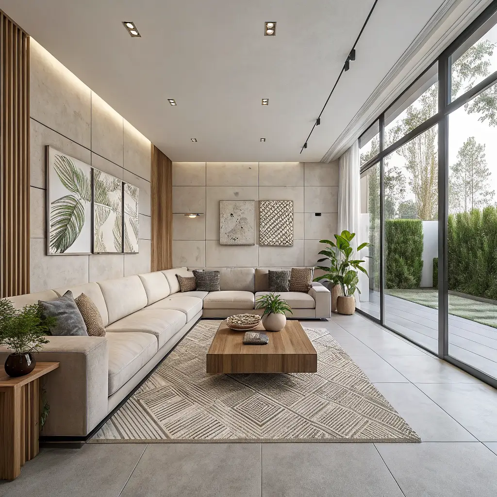 Modern L-Shaped 7 Seater Sofa Living Room Layout