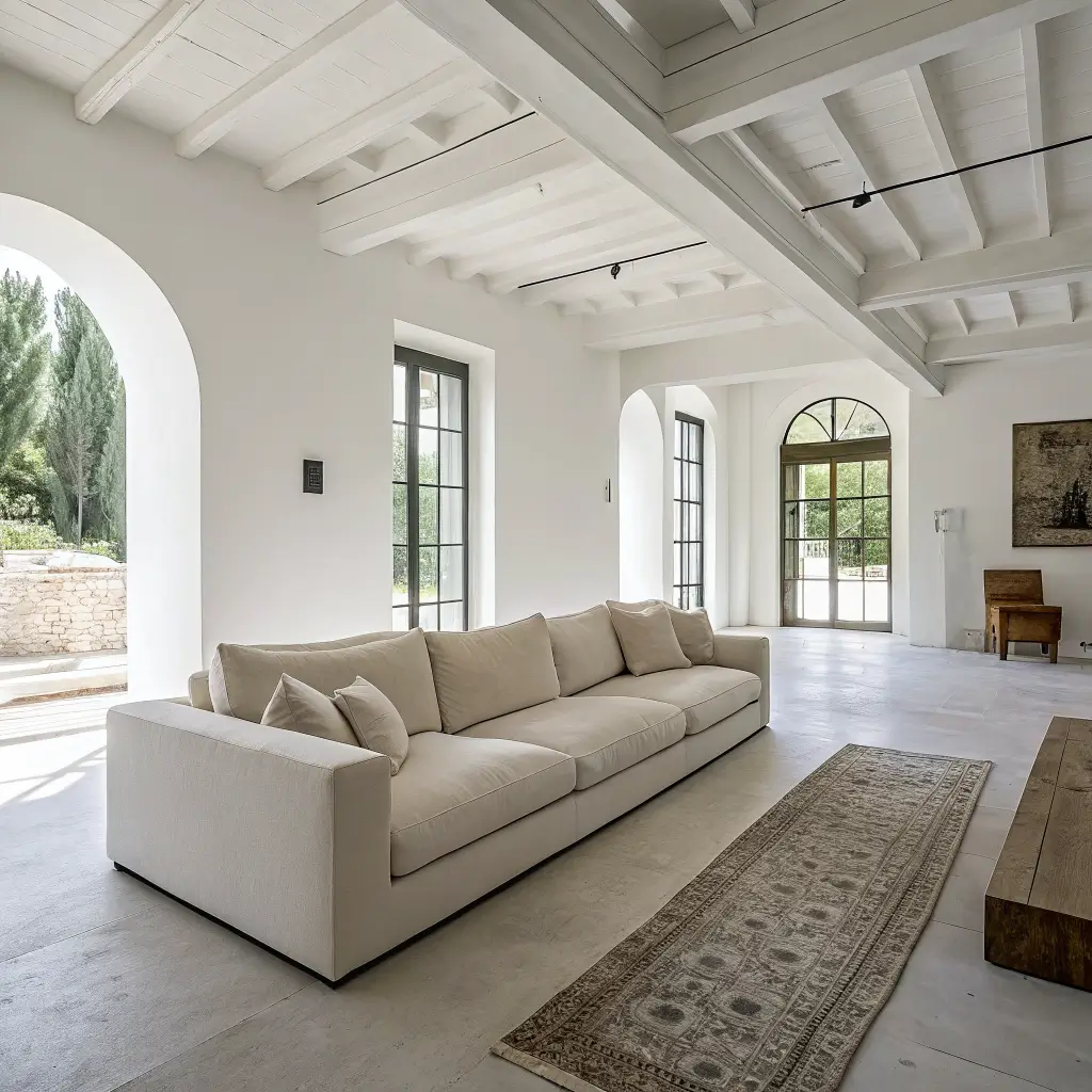 The beige sofa against marble (or marble-look) surfaces creates this sophisticated, hotel-like atmosphere. Add some cream or champagne-colored throw pillows, and you’ve got yourself a space that screams luxury without being over the top.