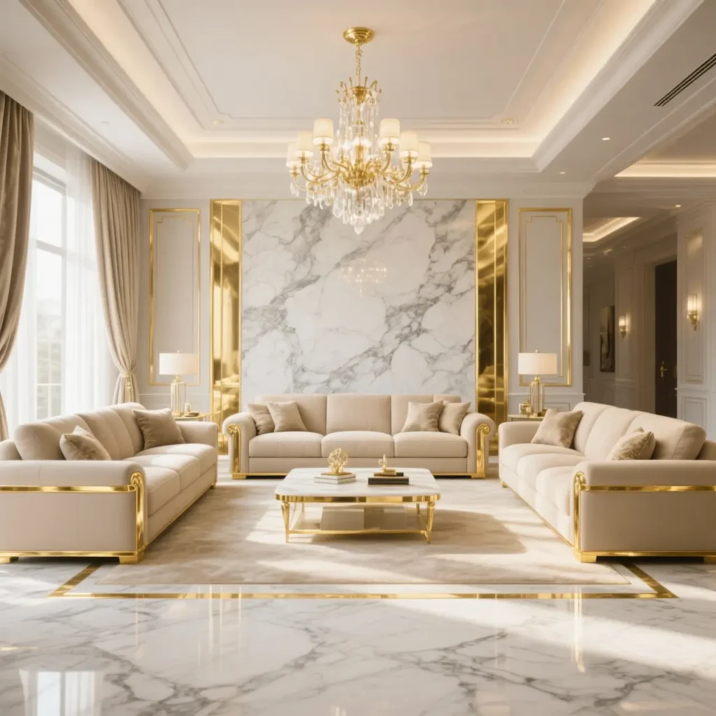 Luxury Beige 7 Seater Sofa with Marble Interior Theme