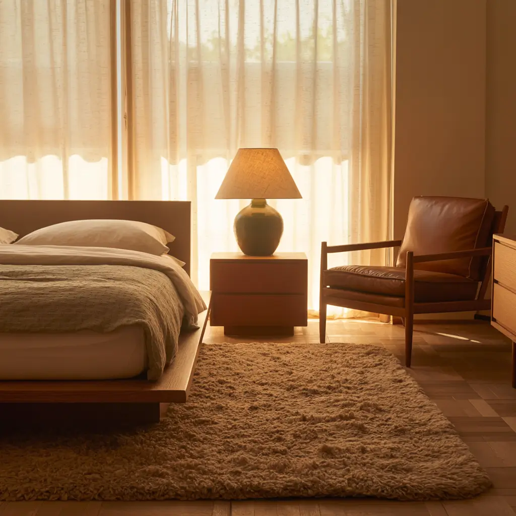 Start with natural materials – a simple wooden bed frame, linen bedding in warm neutrals, and maybe one statement piece like a cognac leather chair. The magic happens in the subtle details: a ceramic vase here, a woven wall hanging there.