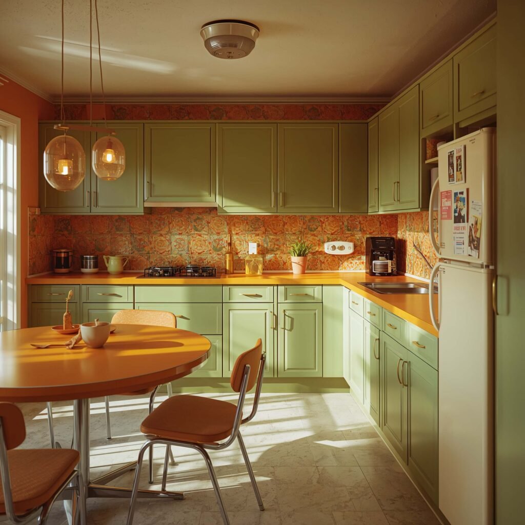 Let’s talk colors, because the 70s didn’t do subtle. Burnt orange, harvest gold, avocado green, and chocolate brown – these aren’t just colors, they’re a lifestyle choice. But here’s my hot take: you don’t need all of them at once unless you want your place looking like a vintage appliance showroom.