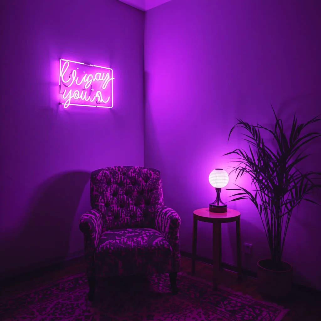 You don’t need to go full nightclub to make this work. Start small with a single neon accent piece – maybe a lightning bolt on your bedroom wall or a geometric design in your home office. The trick is treating neon as an art piece rather than your main light source.