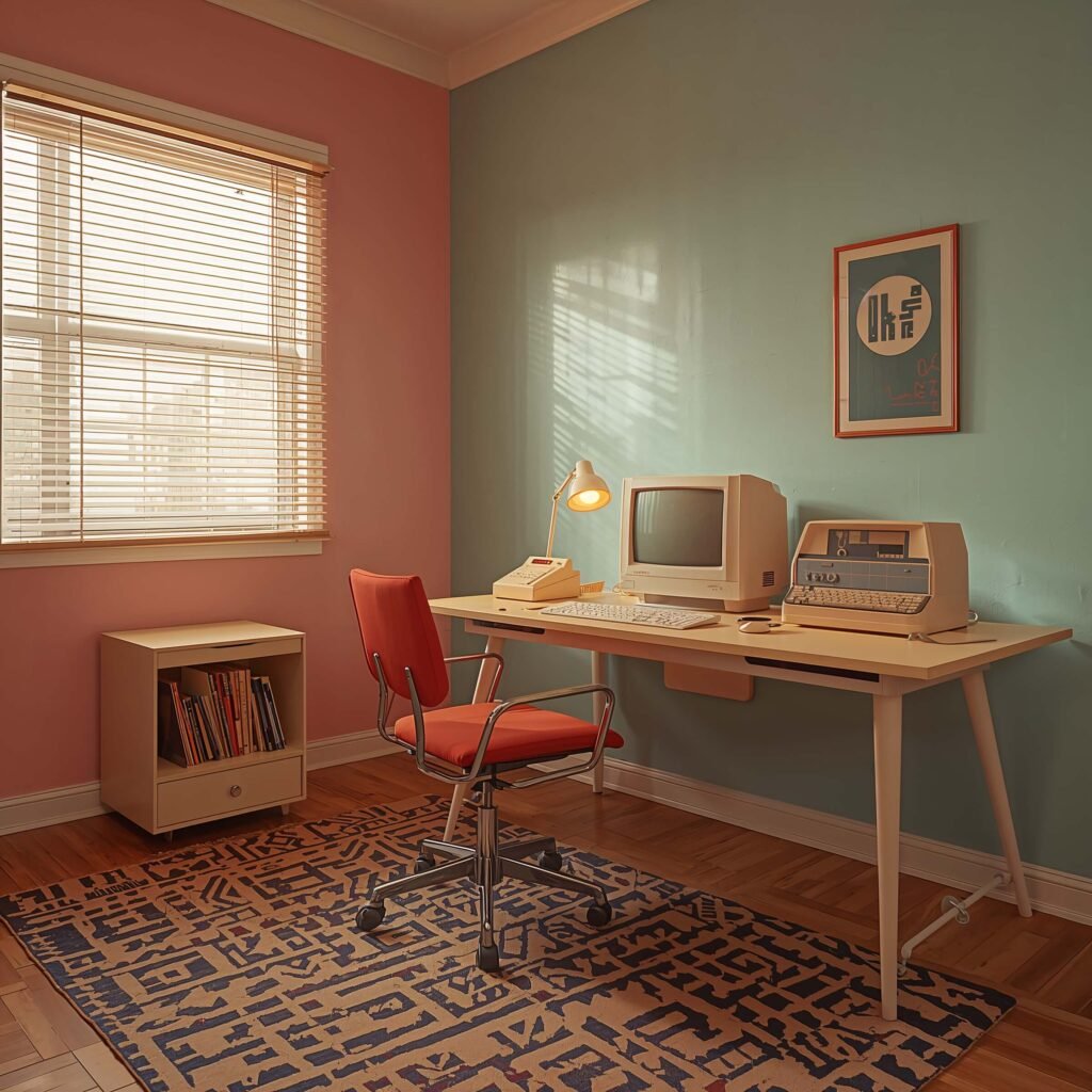 Creating an 80s-inspired office means embracing both the aesthetic and the attitude. You want a space that says “I close million-dollar deals” even if you’re just answering emails in your pajama bottoms.