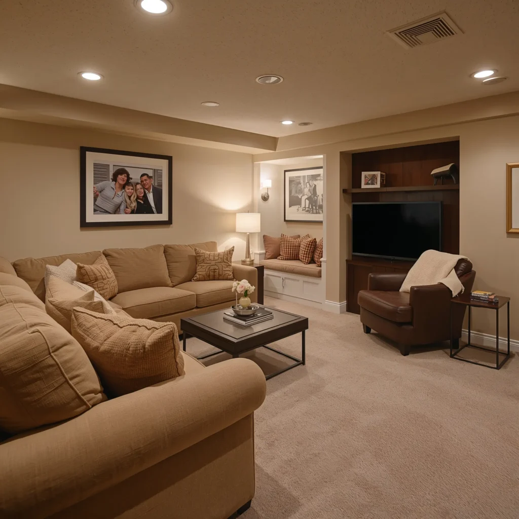 I designed my own basement as a cozy family lounge, and honestly? It’s where we spend 80% of our time now. There’s something about being slightly underground that makes everything feel more intimate and secure – like your own private hideaway.