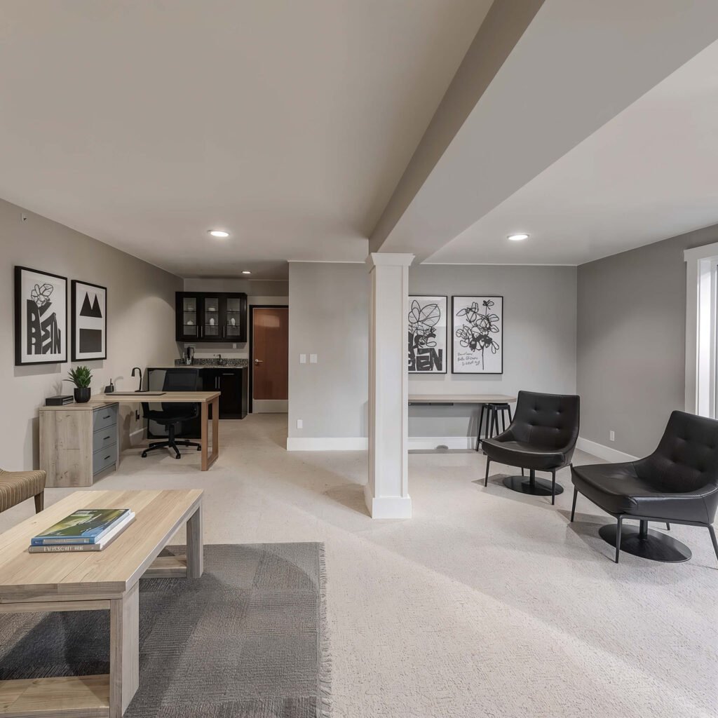Sometimes you need your basement to do it all. Home gym in the morning, office during the day, entertainment space at night – the modern multi-functional basement adapts to whatever life throws at you.