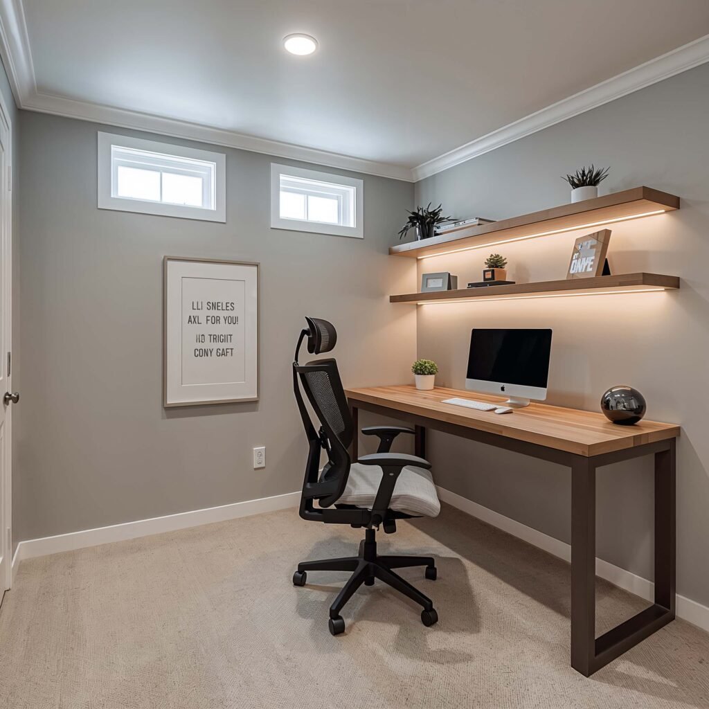 Your basement office needs specific elements to support actual work:
