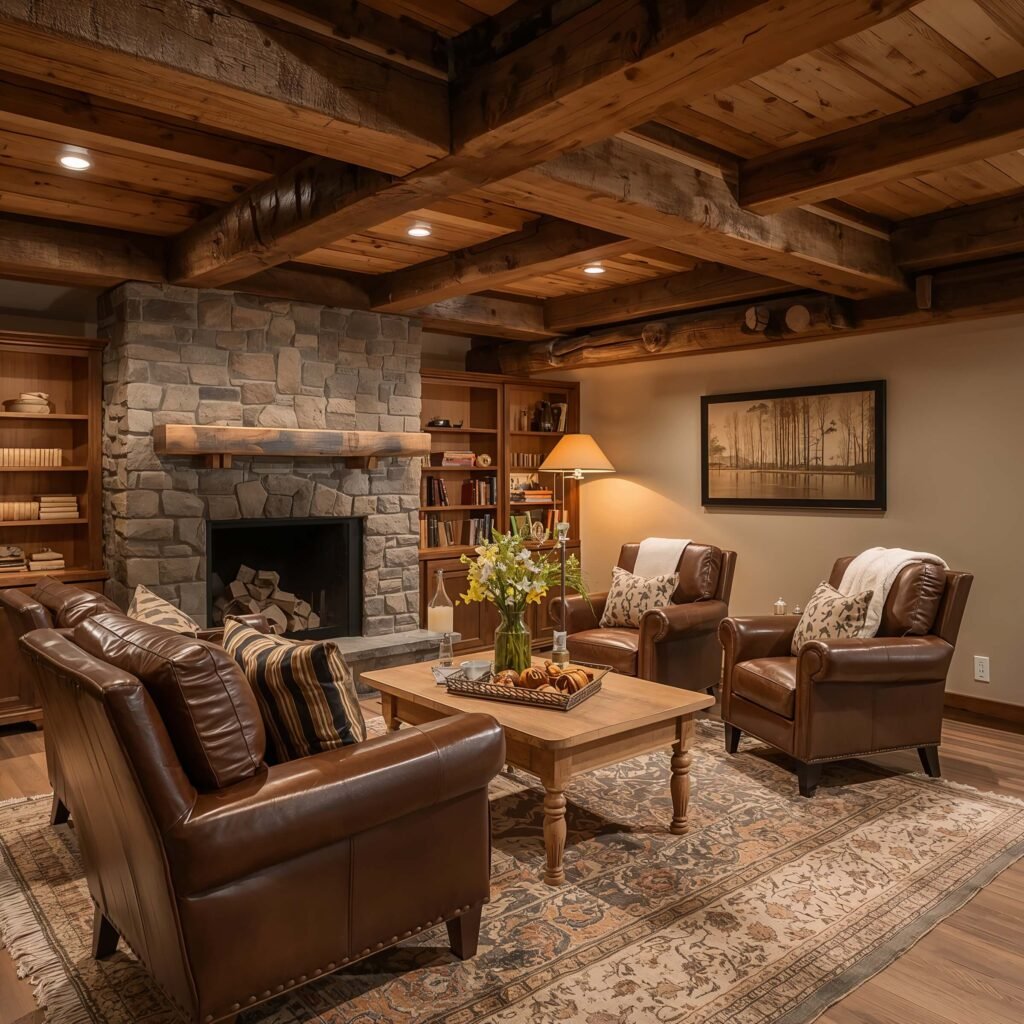 Don’t overdo the hunting lodge theme unless that’s genuinely your thing. A few strategic rustic touches work better than turning your basement into a taxidermy museum. IMO, less dead animals, more cozy vibes.