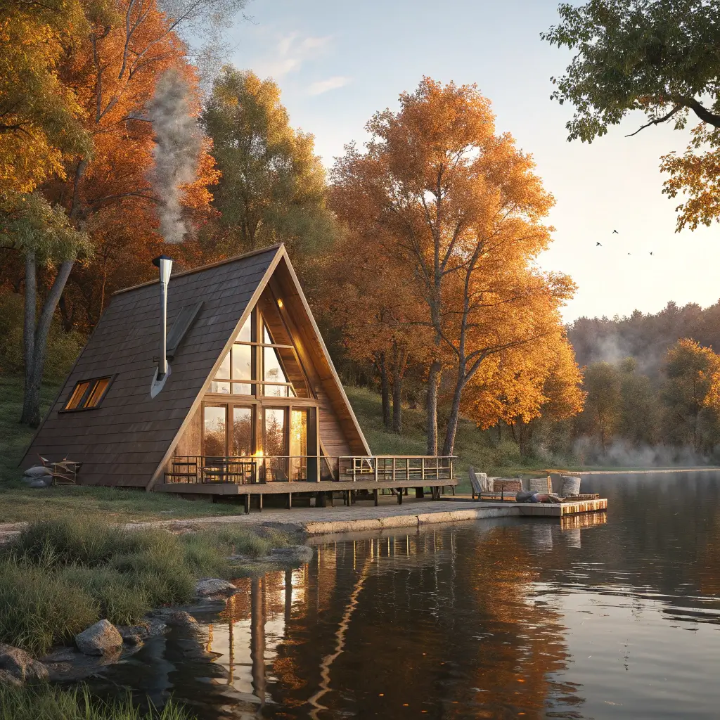 Now this is where A-frames really shine. There’s something about placing one of these beauties right on a lake that just makes sense. Maybe it’s how the triangular shape mirrors the surrounding pines, or how the reflection in the water doubles your architectural impact. Either way, lakeside A-frames hit different.