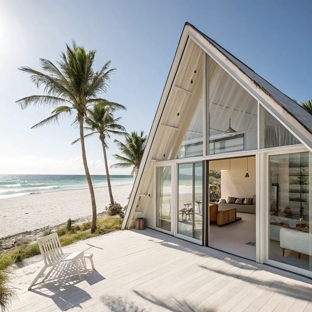 Beach A-frames hit differently than their mountain cousins. They’re breezier, brighter, and somehow more relaxed. The open-concept layout is crucial here – you want that ocean breeze flowing through every corner of your space.