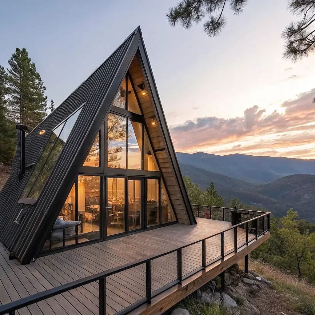 Now we’re entering champagne territory. Luxury A-frames take everything we love about the style and dial it up to eleven. Premium materials, high-end finishes, and architectural details that make your jaw drop – that’s what we’re talking about here.