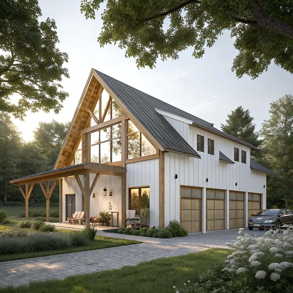 - Metal or cedar siding in neutral tones