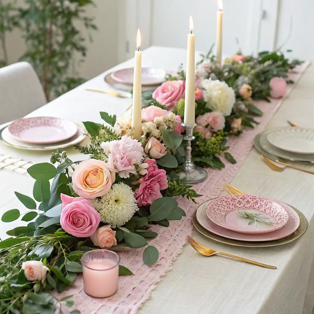 There’s something about fresh flowers that instantly makes everything feel more special, doesn’t there? A floral table garland running down the center of your table creates this lush, garden-party vibe that’s both elegant and approachable.