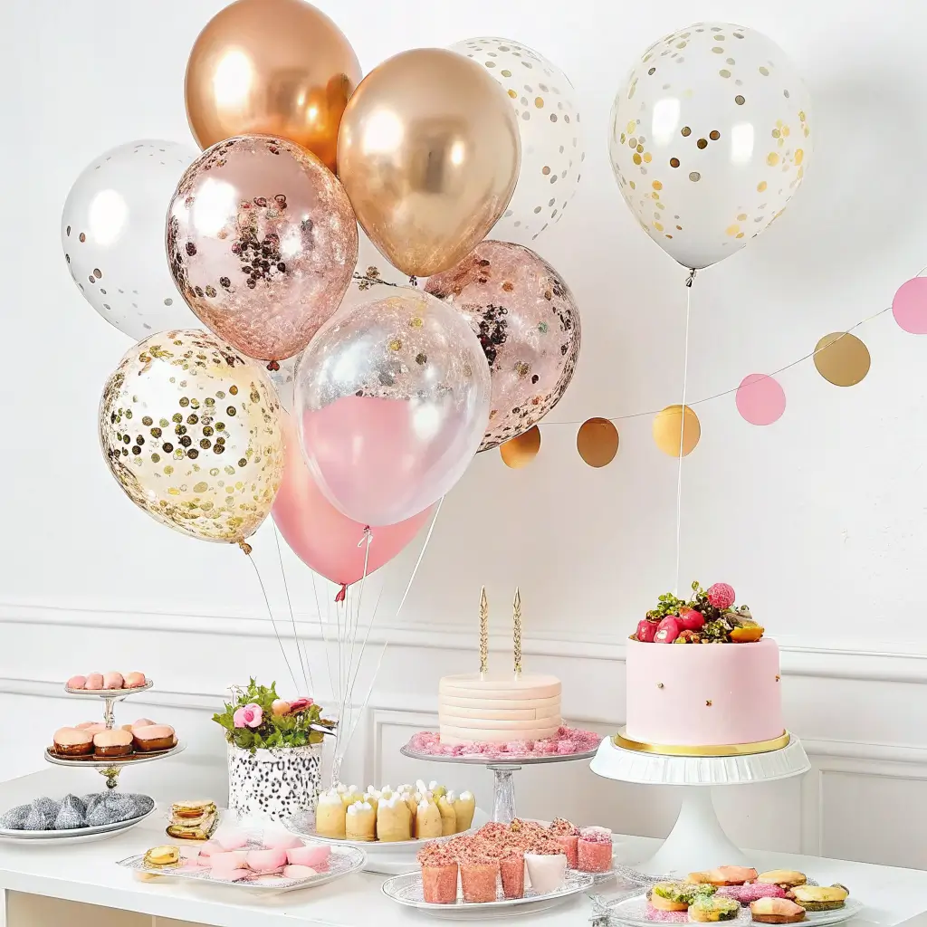 Regular balloons are fine, but metallic confetti balloons are party magic in latex form. They add glamour and movement without requiring any special skills or expensive equipment. Plus, they photograph incredibly well – that confetti catches light beautifully.