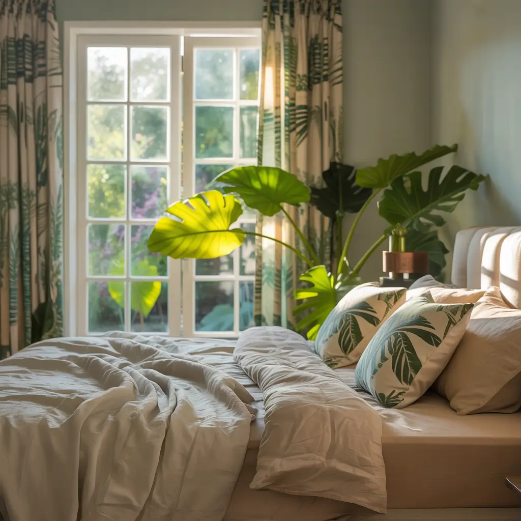 I went with palm leaf prints in my bedroom last summer, and it completely changed the vibe. Every morning feels like waking up in a tropical resort, minus the sand in uncomfortable places. The organic patterns add movement and interest without being overwhelming.
