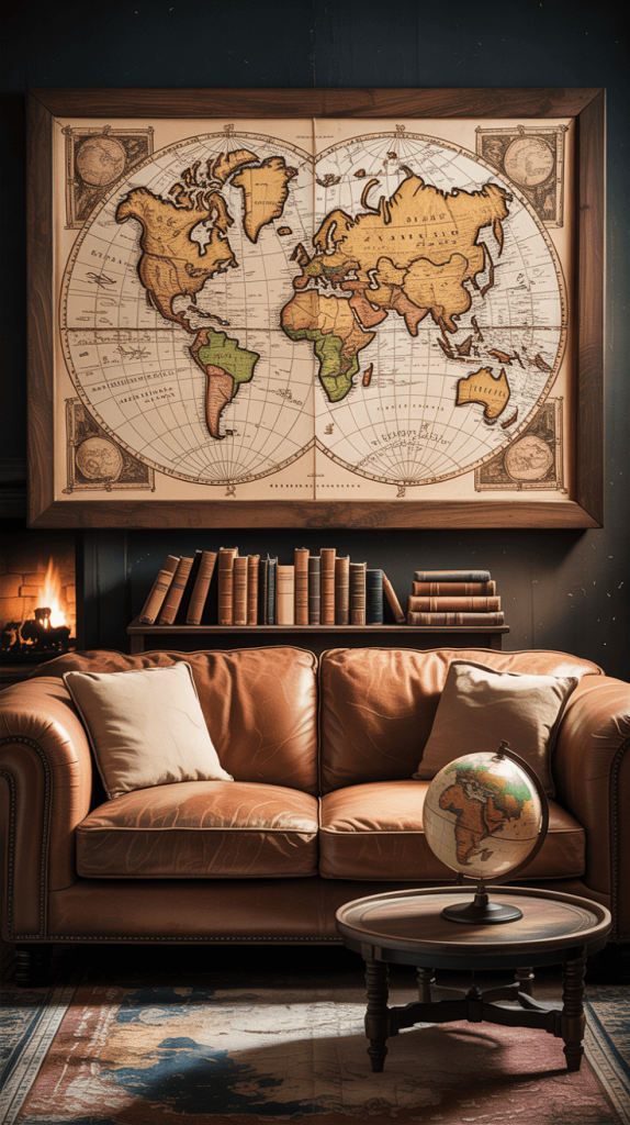A vintage map, whether it’s of the world, a country you love, or even your own city, is a timeless and intellectual decor piece.