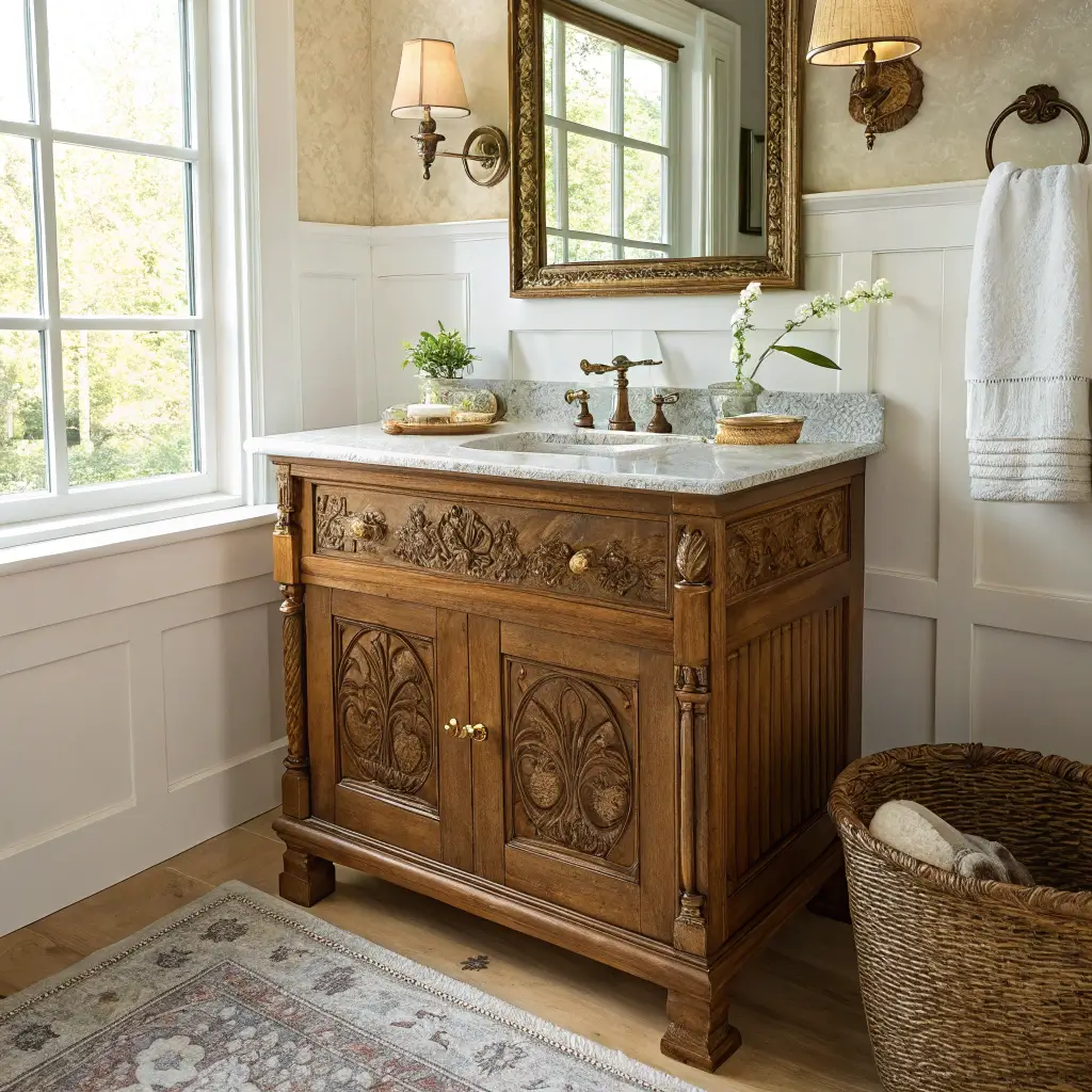 You know what instantly transforms a mundane bathroom into something special? An antique vanity that tells a story.