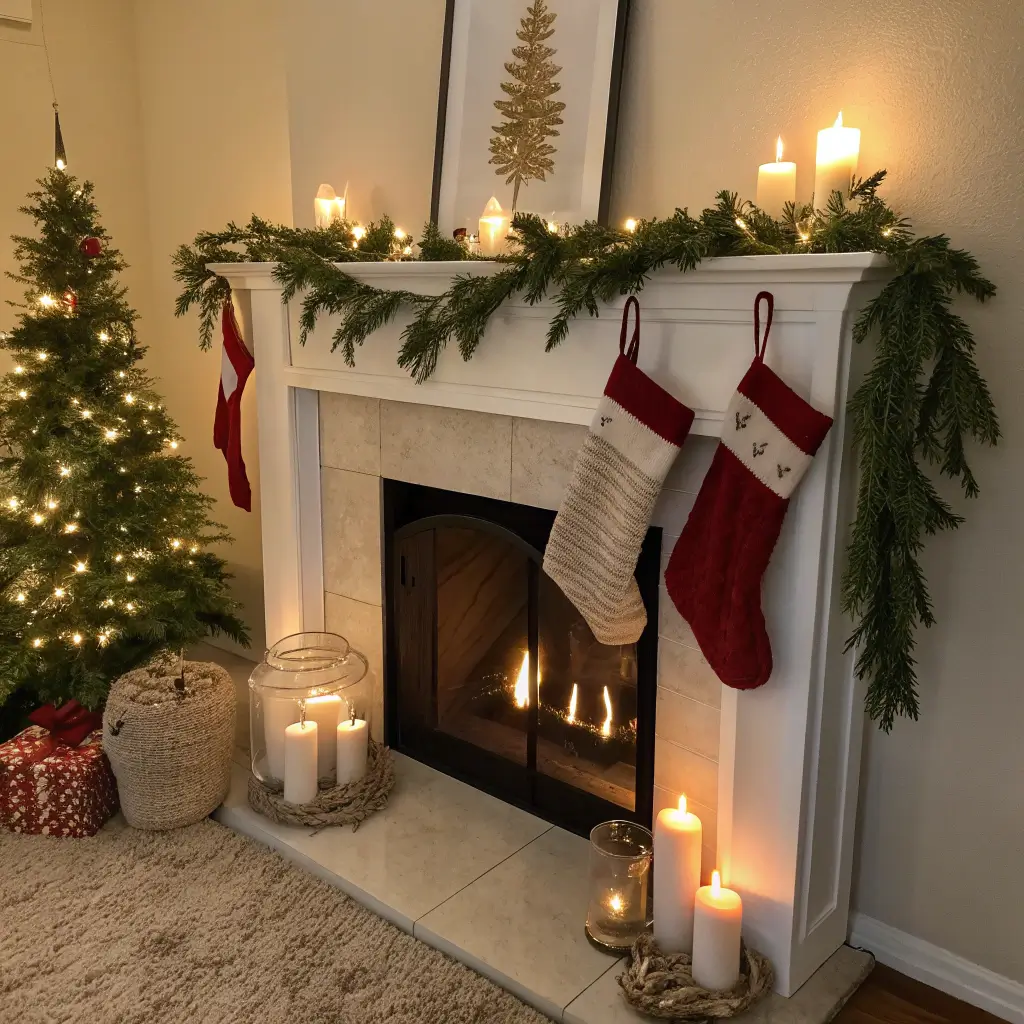 The magic happens when you style around your faux fireplace. Add a small shelf above it, hang stockings from removable hooks, arrange presents nearby. Your brain totally buys into the illusion 🙂