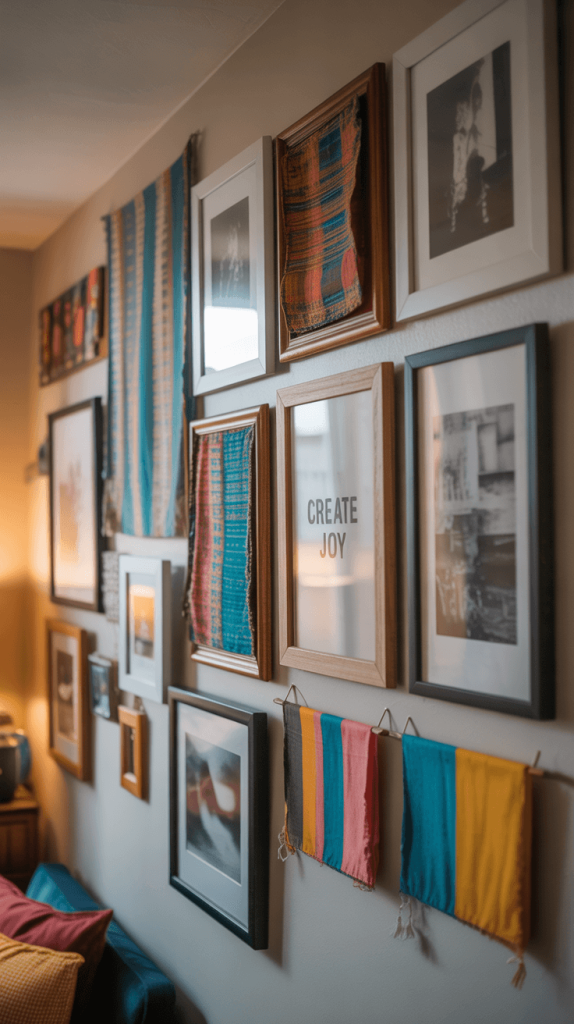 - Create a gallery wall: This is my favorite trick. Mix and match framed photos, postcards, concert posters, and kids’ drawings. The key is to use matching frames (all black, all white, or all natural wood) to make a collection of different things look cohesive. I did this in my hallway with a bunch of thrifted frames I spray-painted matte black. Total cost: maybe $40.
