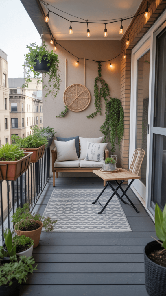 Finally, add greenery. Use railing planter boxes, stackable pots, and hanging planters to create a lush, green retreat. String up some outdoor fairy lights, and you’ve got a perfect spot for evening drinks. It’s a whole extra room you didn’t know you had!