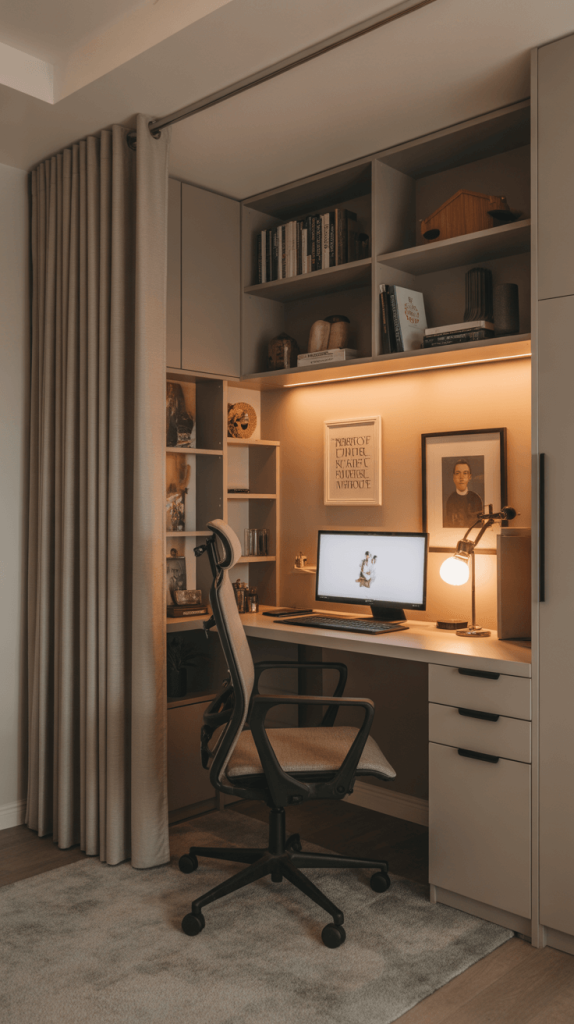 - The Room Divider: Use a tall bookshelf, a folding screen, or even a curtain rod and a long curtain to visually separate your desk from the rest of your living area.