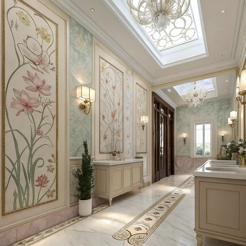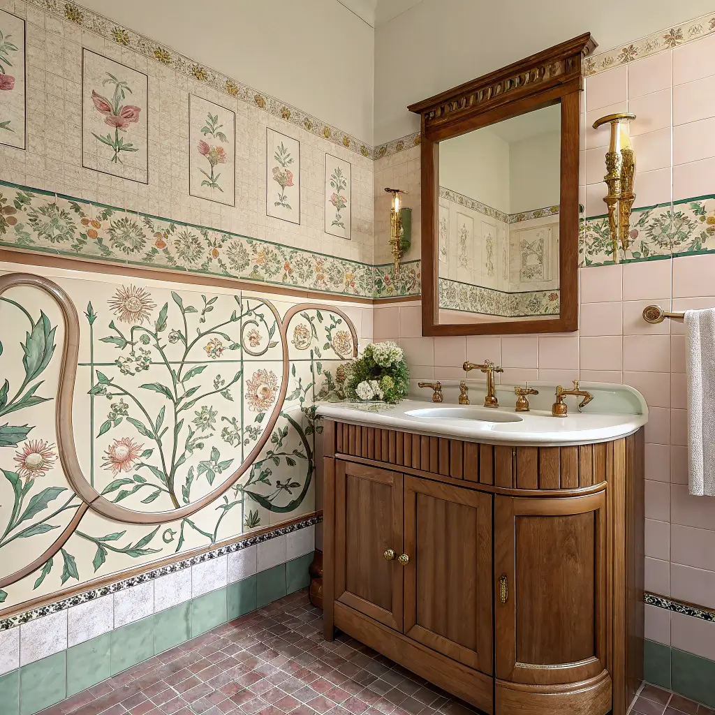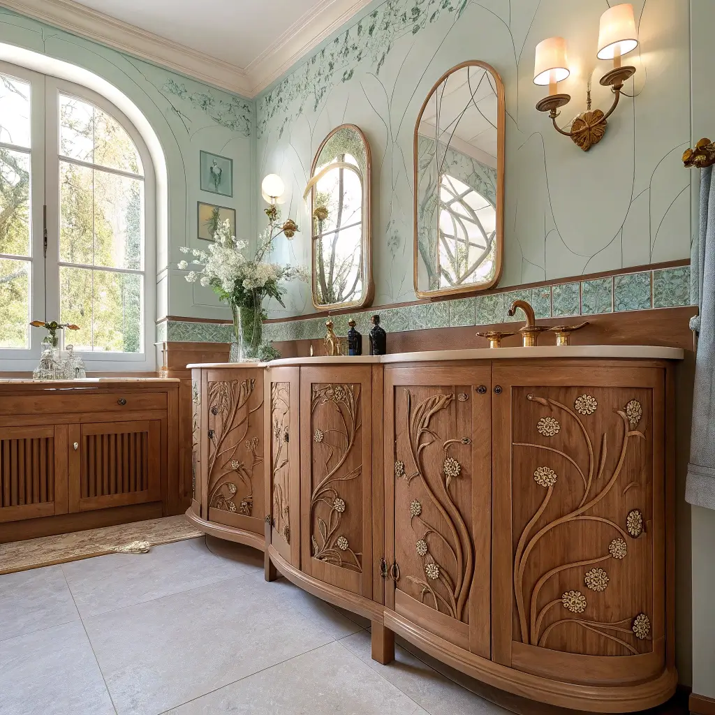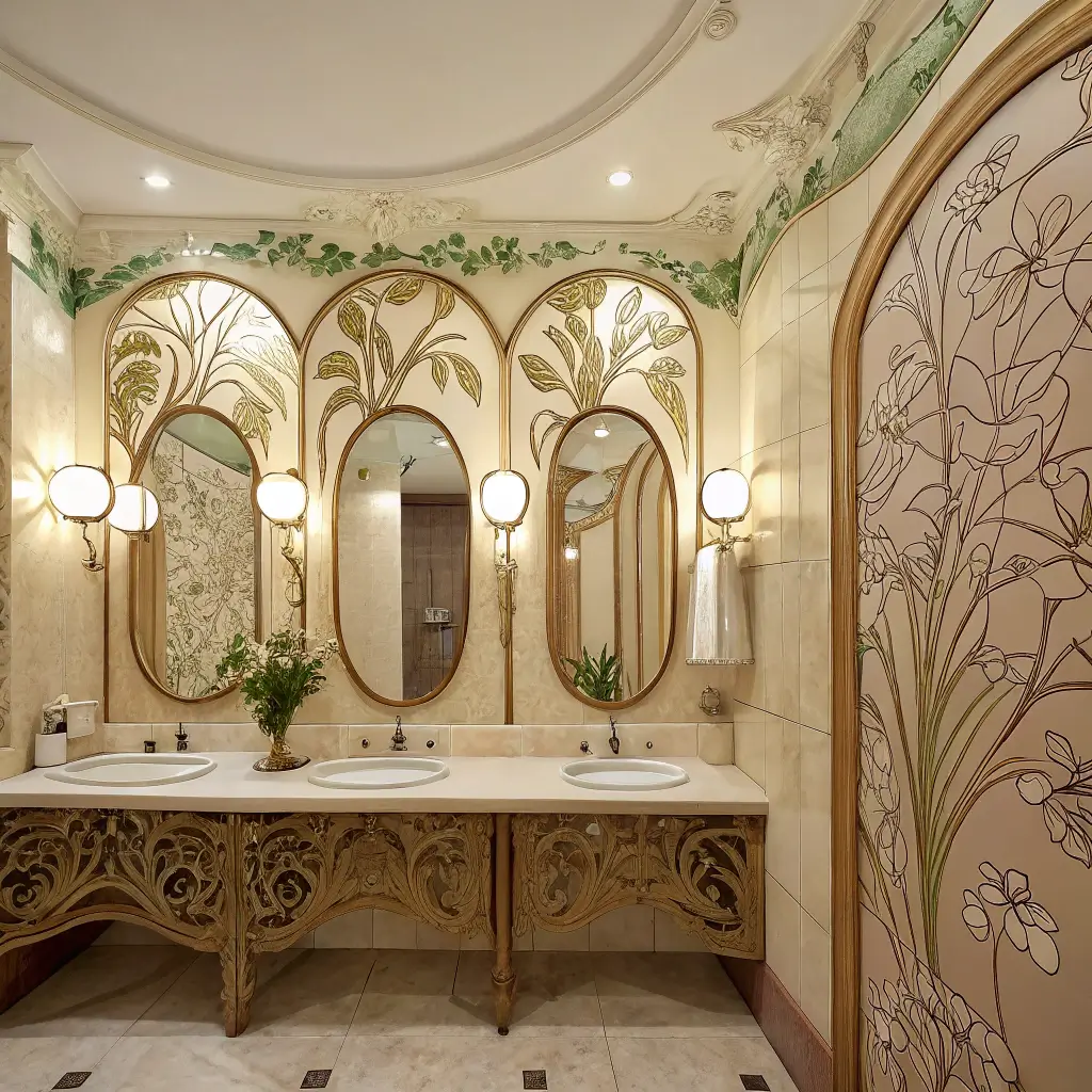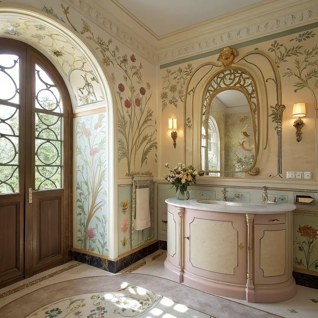 Art Nouveau bathrooms hit different. They take you somewhere between a fancy Parisian café and an enchanted forest, all while you’re just trying to brush your teeth.