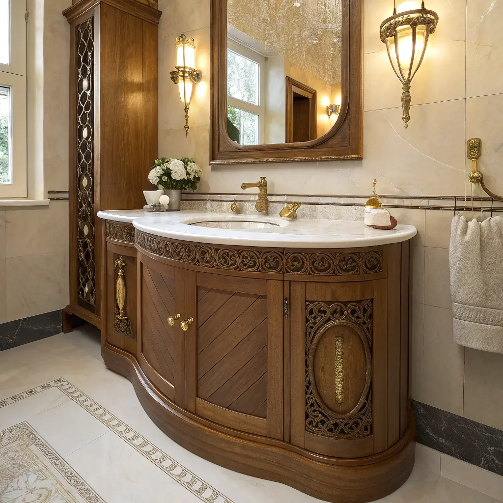 Straight lines? In Art Nouveau? Never heard of her. Curved vanities bring that signature flowing movement into your bathroom’s most functional piece. These designs make your morning routine feel like you’re getting ready at some fancy European hotel.