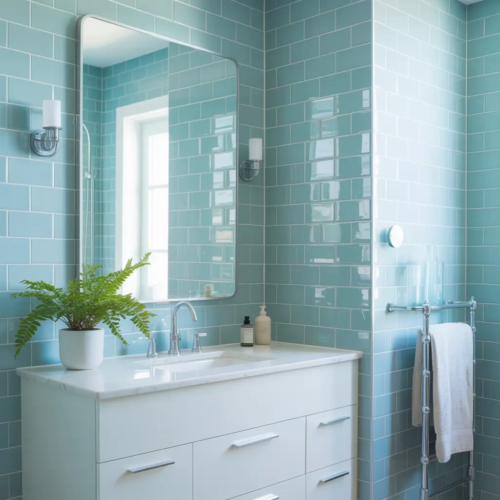 Don’t limit yourself to just walls. Baby blue subway tiles on the floor (in a larger format) creates incredible flow. Just make sure to choose tiles with proper slip resistance—style shouldn’t come at the cost of safety.