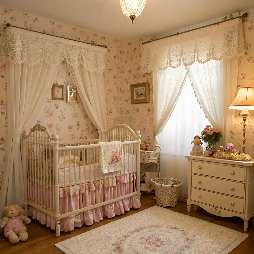 Start with a classic color palette – think soft yellows, mint greens, or powder blues paired with cream. These colors have been working in nurseries for decades because, shocker, they’re soothing and timeless. Add vintage-inspired wallpaper (removable, please, for your sanity) with delicate florals or classic patterns.