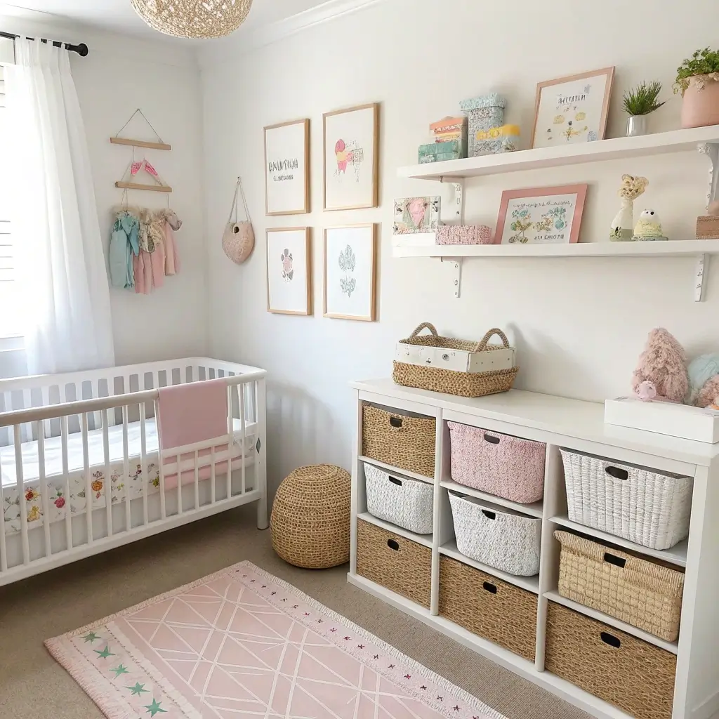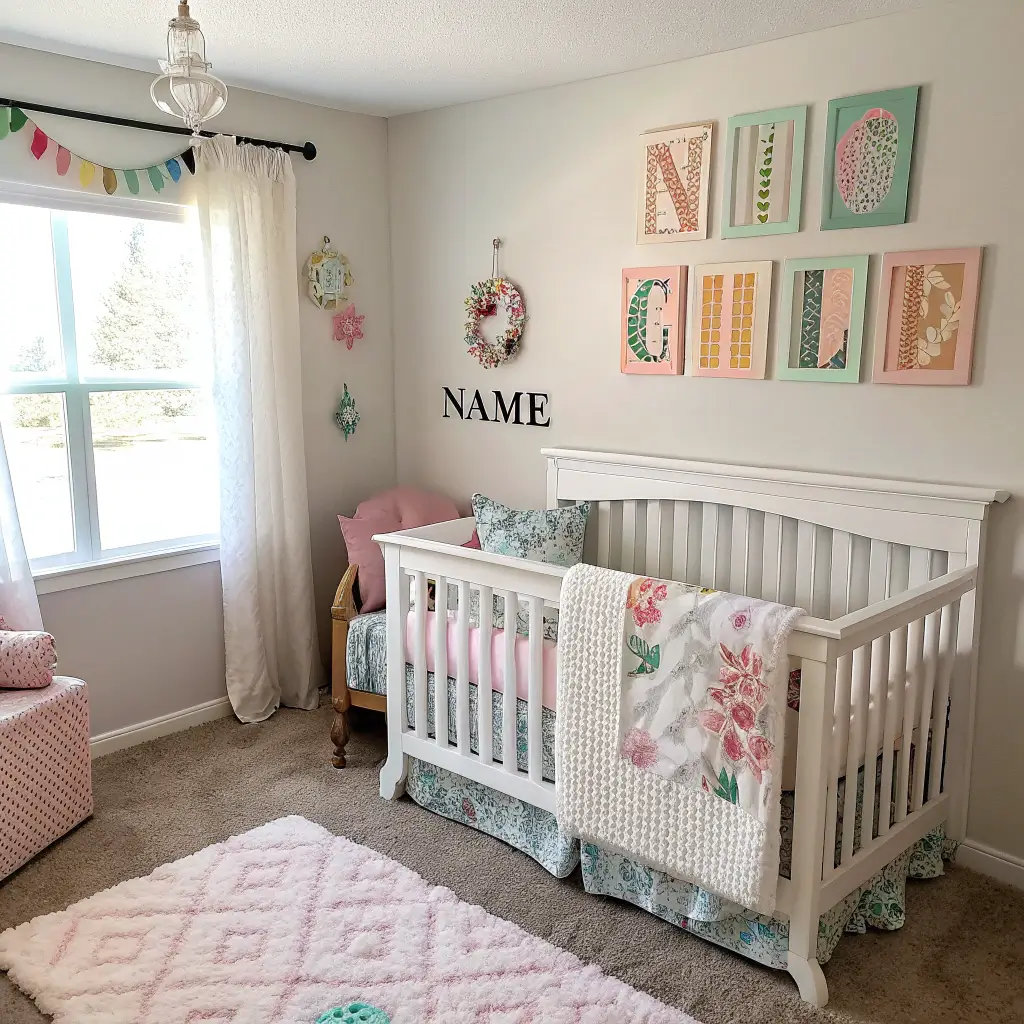 Choose a neutral base palette – grays, whites, or earth tones – then add feminine touches through accessories. A gray and white nursery with blush pink accents feels fresh and modern. Sage green walls with lavender accessories? Absolutely gorgeous and totally flexible.