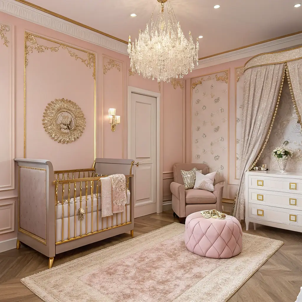 Texture plays a huge role in elevating this color combo. Velvet cushions, silk curtains (or faux silk, because babies and real silk don’t mix), and plush rugs add luxury without breaking the bank. These textures catch light differently, making your pink and gold palette feel dynamic rather than flat.