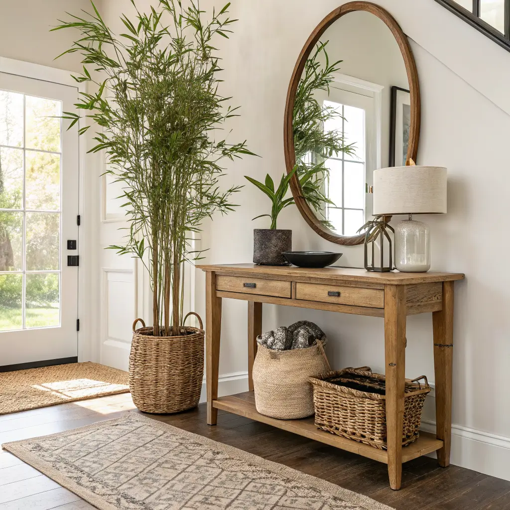 I went with a bamboo palm in a large woven basket planter, and the transformation was immediate. Suddenly, my entryway had personality. Guests actually comment on it now, which never happened when it was just a key bowl and good intentions.