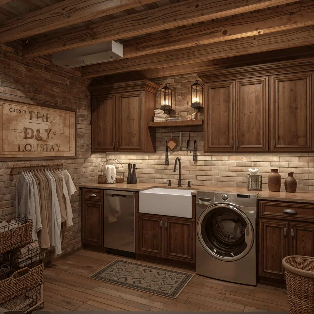 Who says basements can’t feel warm and inviting? If minimalism feels too cold for you, let’s talk about creating a rustic laundry haven that feels like a cozy cabin retreat.
