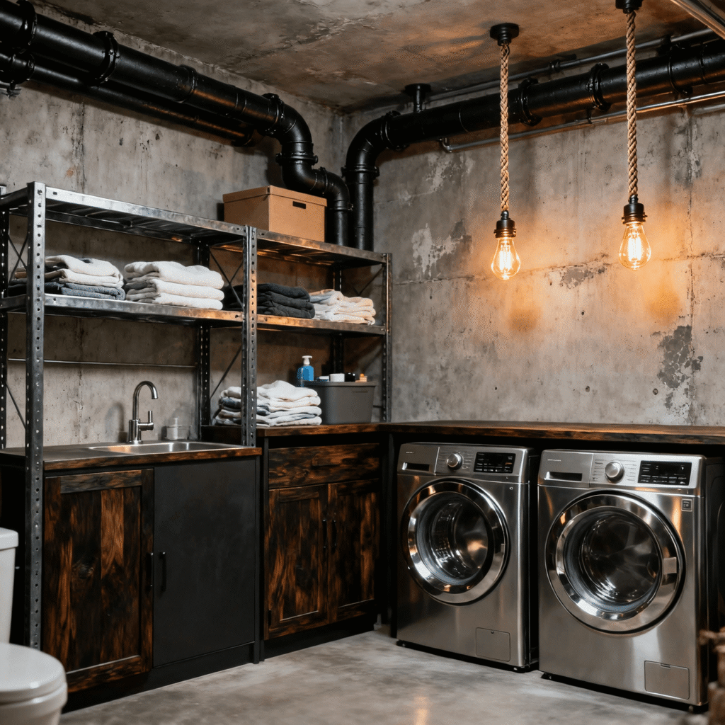 Industrial Style Basement Laundry Design