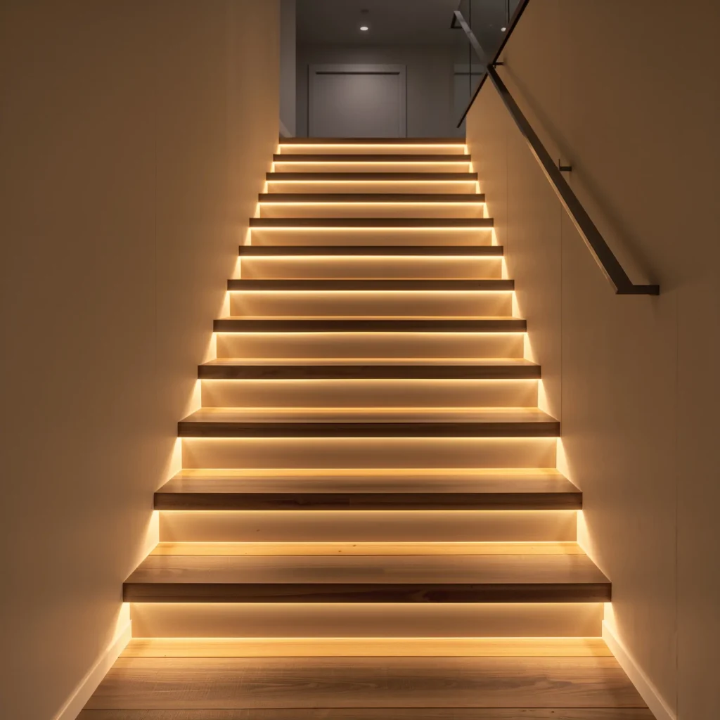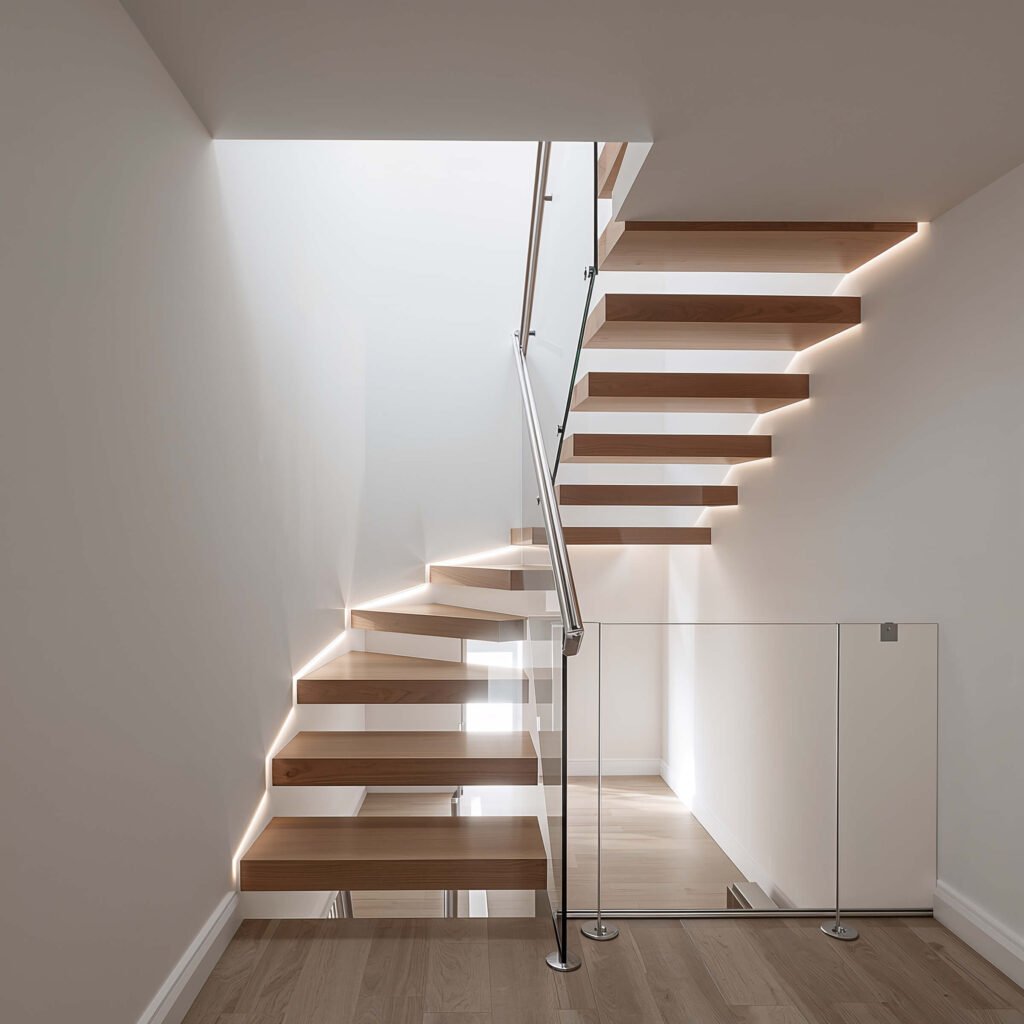 I installed floating wooden stairs in my last house, and let me tell you – the LED strips underneath each step were a game-changer. Not only do they provide essential safety lighting, but they also create this soft ambient glow that makes midnight snack runs way less terrifying. Plus, your guests will think you hired some fancy designer (you don’t have to tell them about the YouTube tutorials).