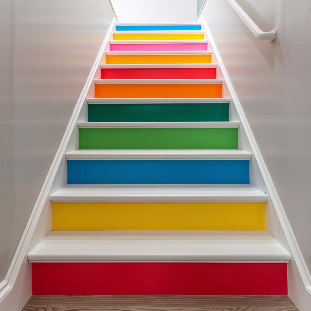 Here’s what I love about this idea: you can change it whenever you want! Unlike structural modifications, paint allows for experimentation. Start bold with bright colors, or go subtle with an ombre effect. Feeling artistic? Create a mural that tells a story as you descend.