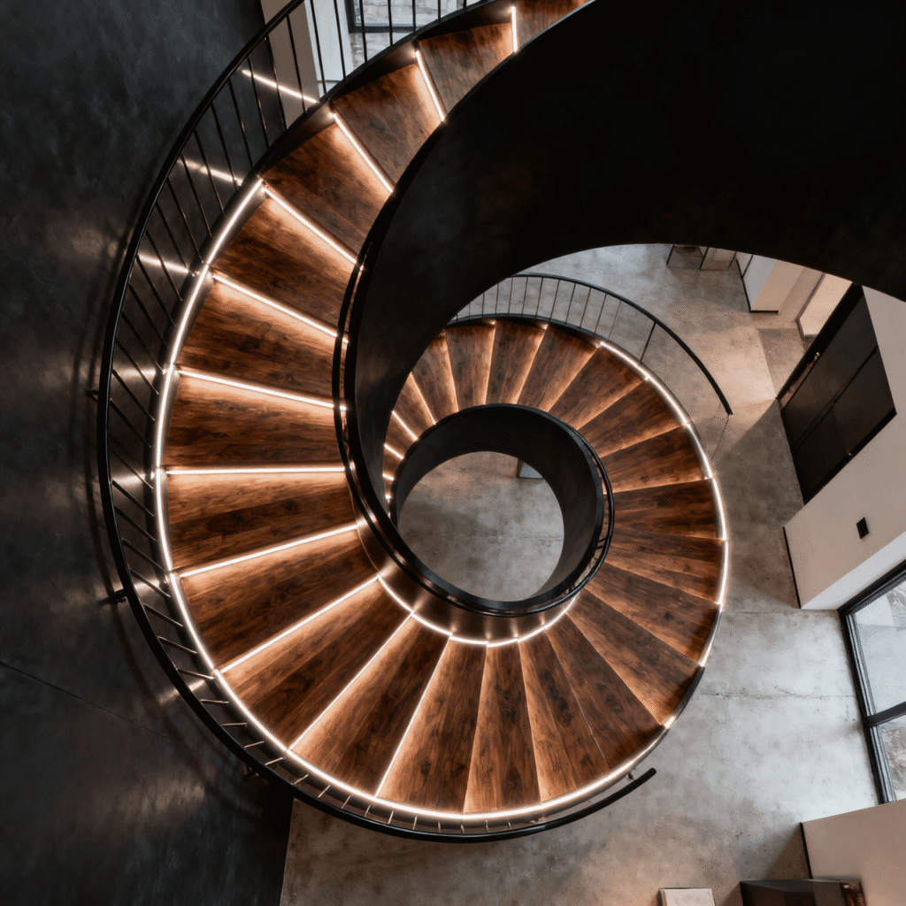 Got limited space? Spiral staircases solve space problems while adding architectural interest. I’ll be honest – retrofitting a spiral staircase isn’t a weekend project, but the space savings and visual impact make it worth considering for the right situation.