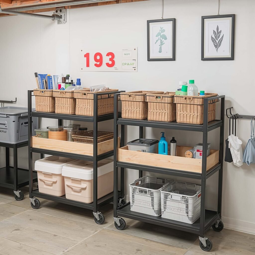 Mobile storage sounds fancy, but it’s really just putting wheels on everything. And honestly? It’s genius. Being able to move storage around transforms how you use your basement space.