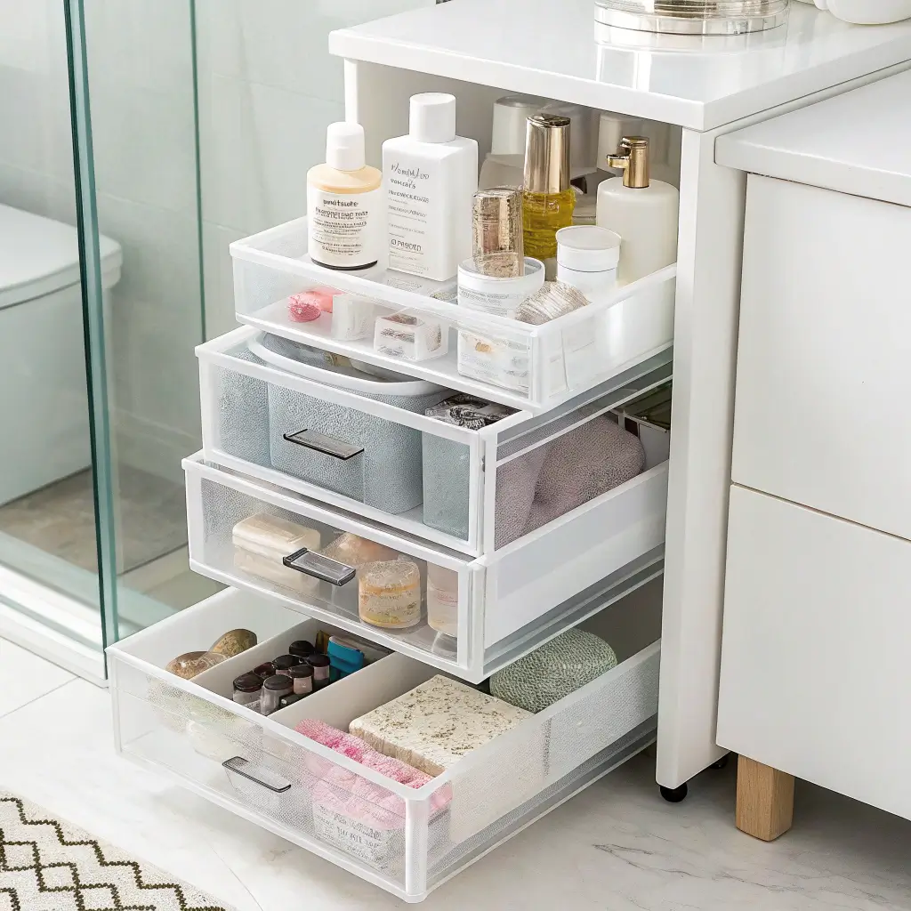Now I swear by clear, stackable bins. They’re like little apartments for your bathroom products. Each bin gets a category – one for skincare, one for hair products, one for those random samples I keep telling myself I’ll use someday (spoiler alert: I won’t, but I keep them anyway).