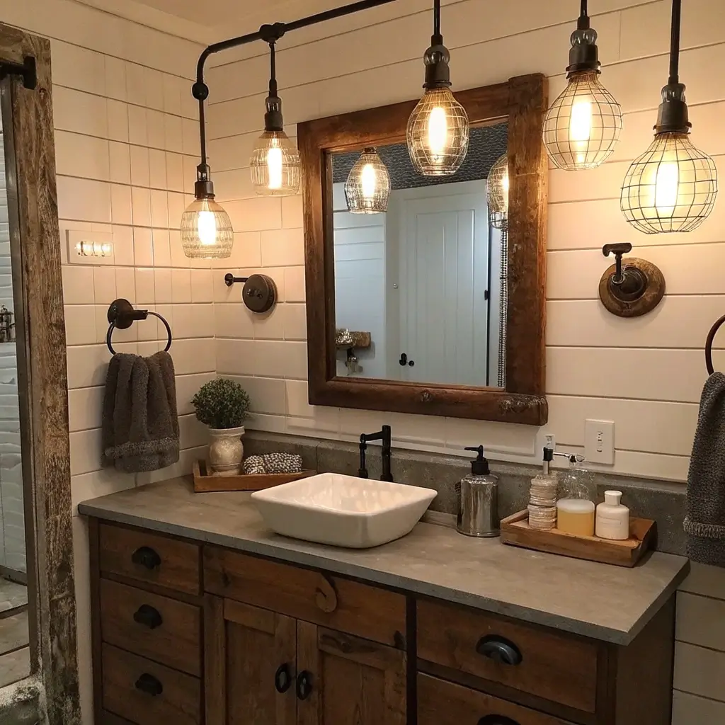 Who says bathrooms can’t have personality? Exposed bulb fixtures bring that industrial-chic vibe that makes your bathroom feel like it belongs in a trendy downtown loft.
