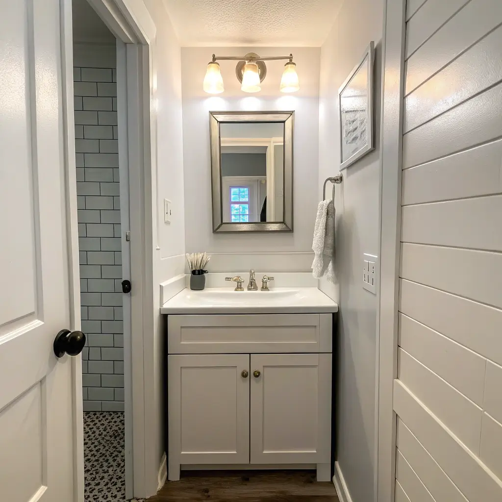I’ll admit, I was worried these would be too bright initially. But here’s the trick – use warm-toned Edison LED bulbs. You get that vintage aesthetic without the energy waste or the heat that’ll make your small bathroom feel like a sauna.