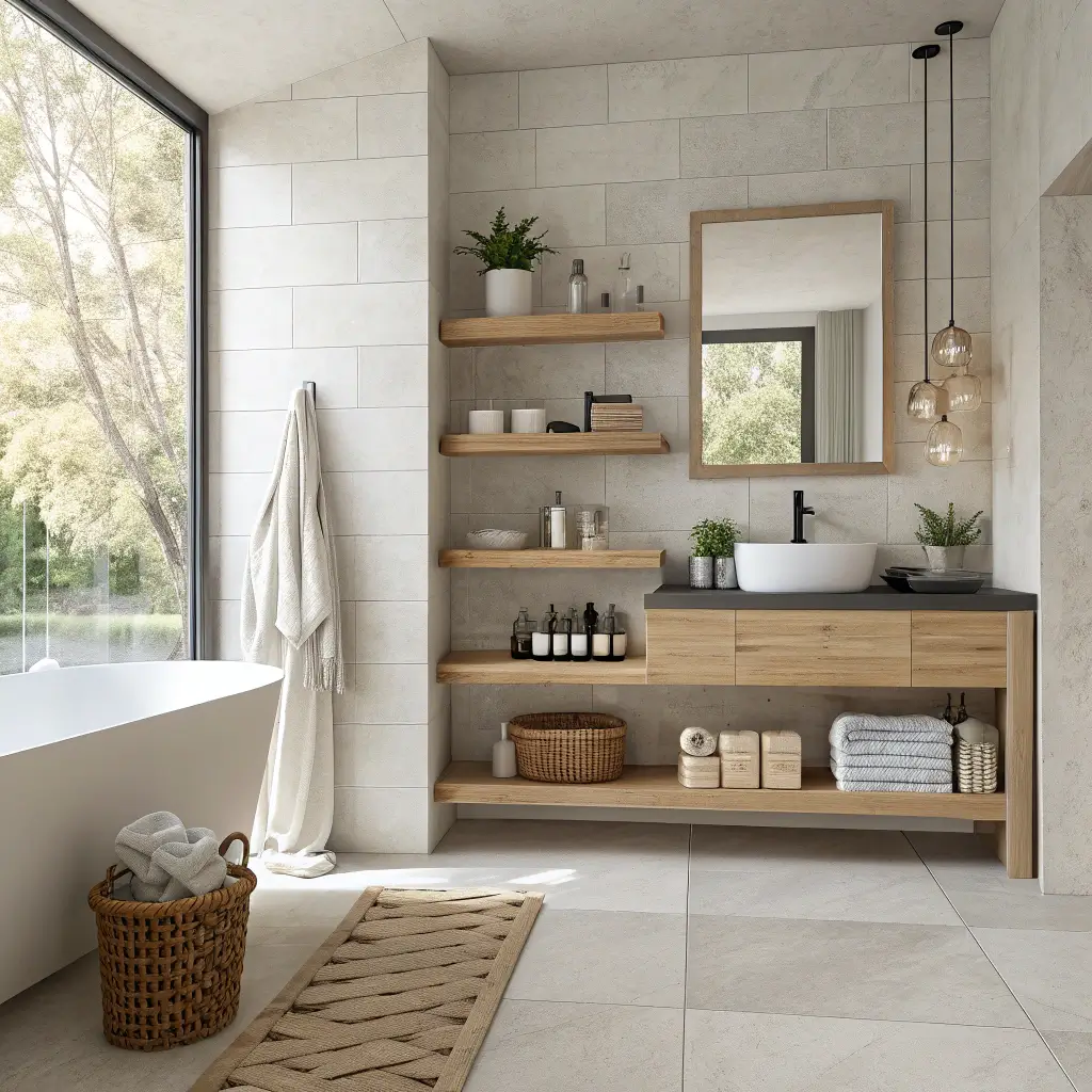 Floating Wooden Shelves for Minimalist Bathrooms