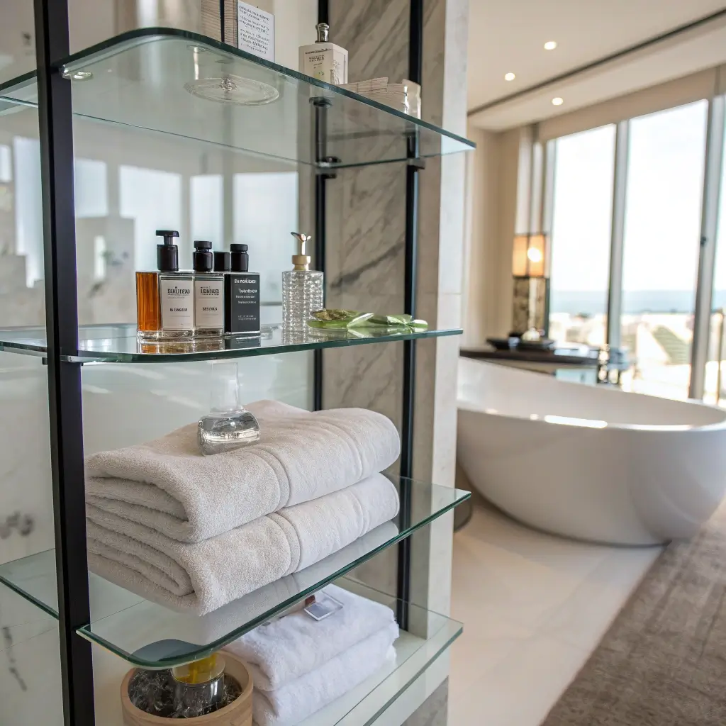 I installed glass shelves in my guest bathroom, and every visitor comments on them. The key is choosing the right thickness – go for at least 8mm tempered glass for safety and durability. Anything thinner looks cheap and feels flimsy.