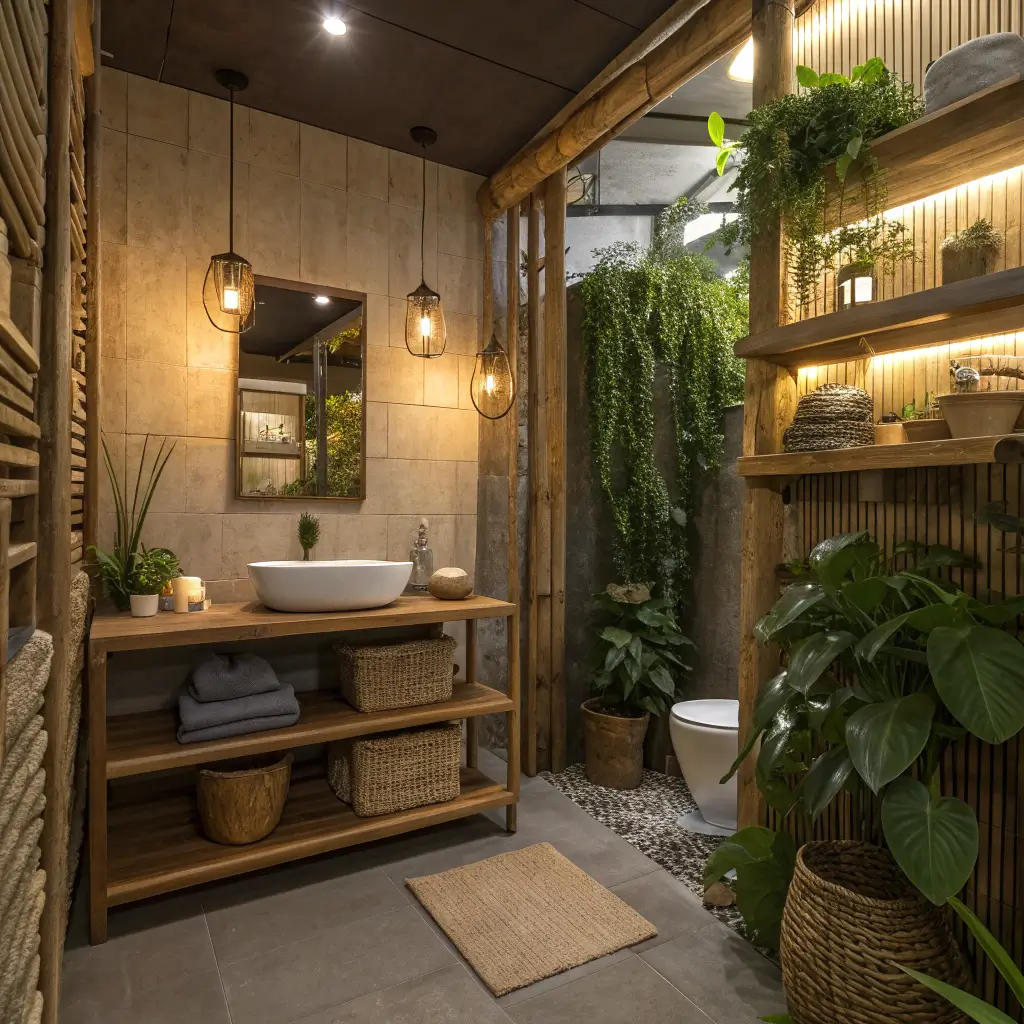 Bamboo shelves hit different when you care about the planet. They grow faster than traditional hardwood, resist moisture naturally, and look absolutely gorgeous. Bamboo brings that spa-like zen vibe that makes every shower feel like a mini vacation.