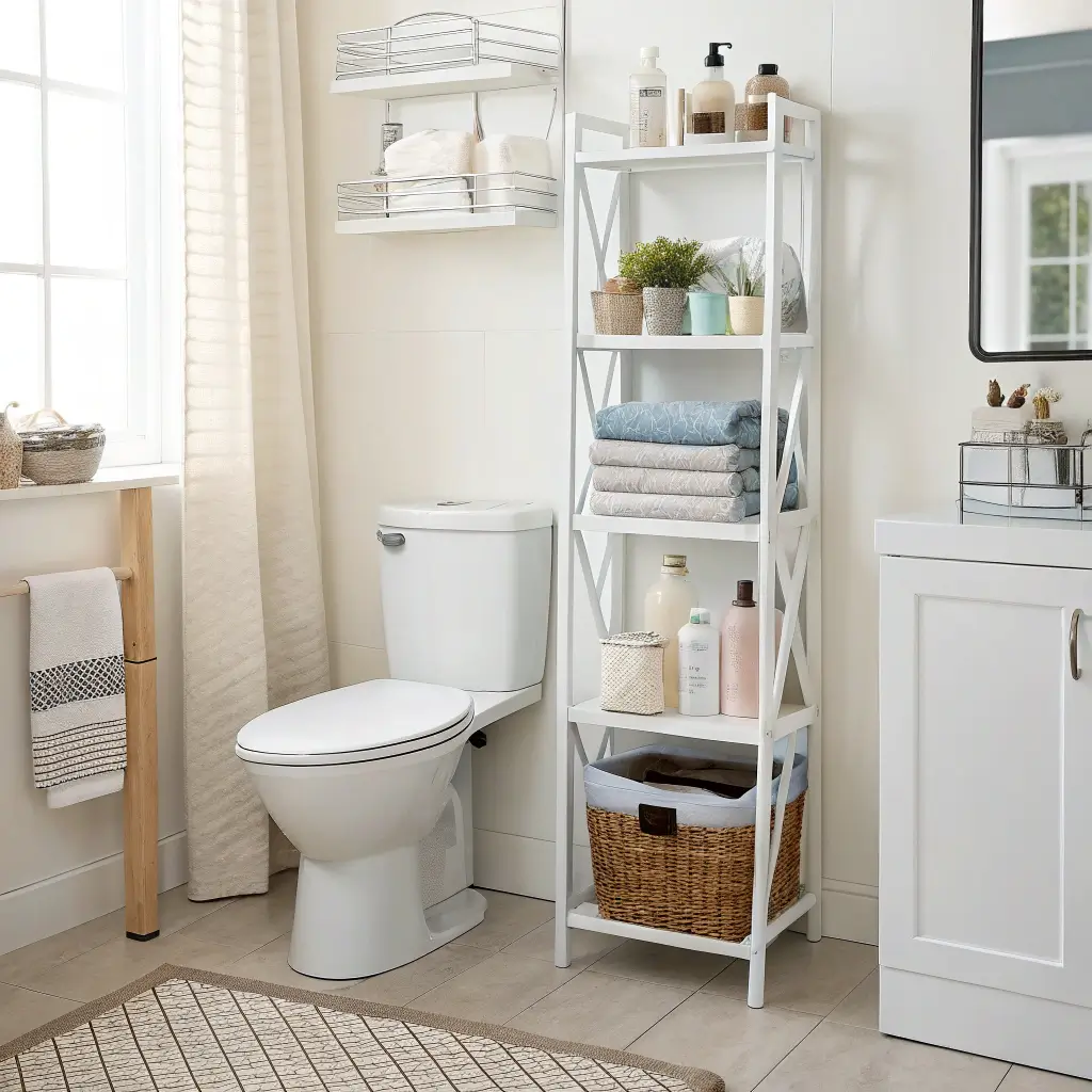 That space above your toilet? Prime real estate that most people waste. Over-the-toilet shelving units utilize this forgotten zone brilliantly. You gain storage without sacrificing a single inch of floor space – it’s basically bathroom magic.