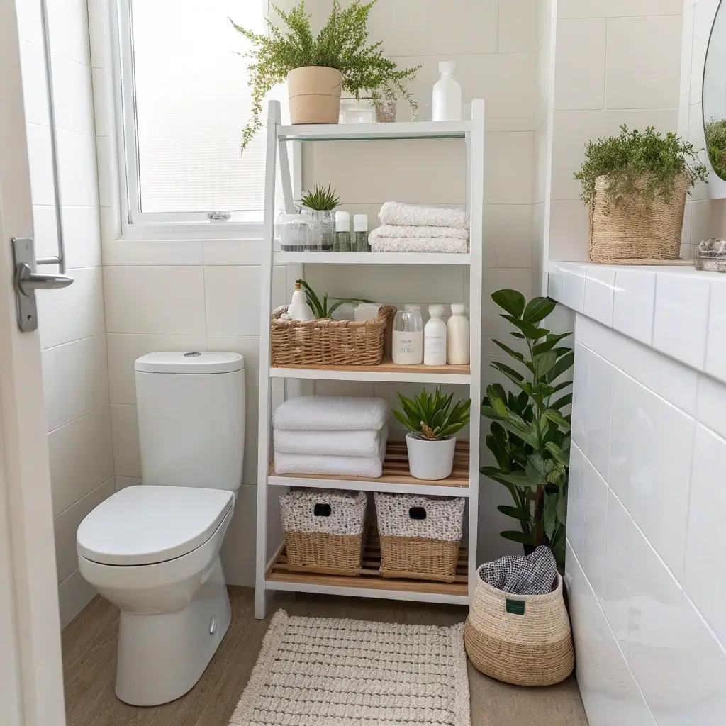 I’ve had a white ladder shelf in my bathroom for two years now, and it’s still my favorite piece. The open design keeps things from feeling cramped, while the multiple tiers give you tons of storage options.