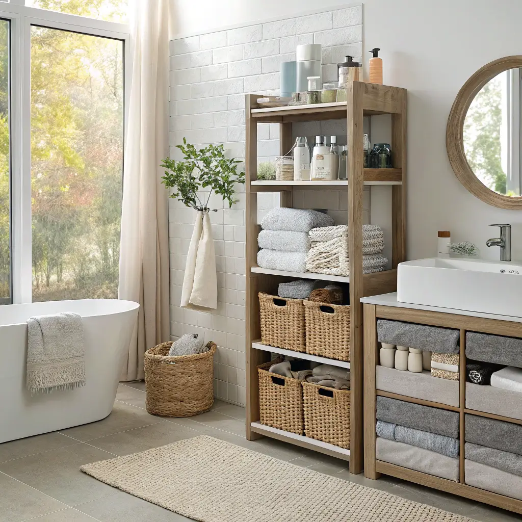 Let me guess – you’re standing in your bathroom right now, looking at bottles scattered everywhere, towels with no home, and thinking “there’s gotta be a better way to organize this chaos.”